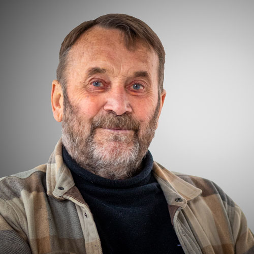 Født i 1943 i Osted ved Lejre, flyttede han midt i 1970’erne til Langeland, hvor han i dag driver et galleri på torvet i Rudkøbing. Som kunstner er han autodidakt.
